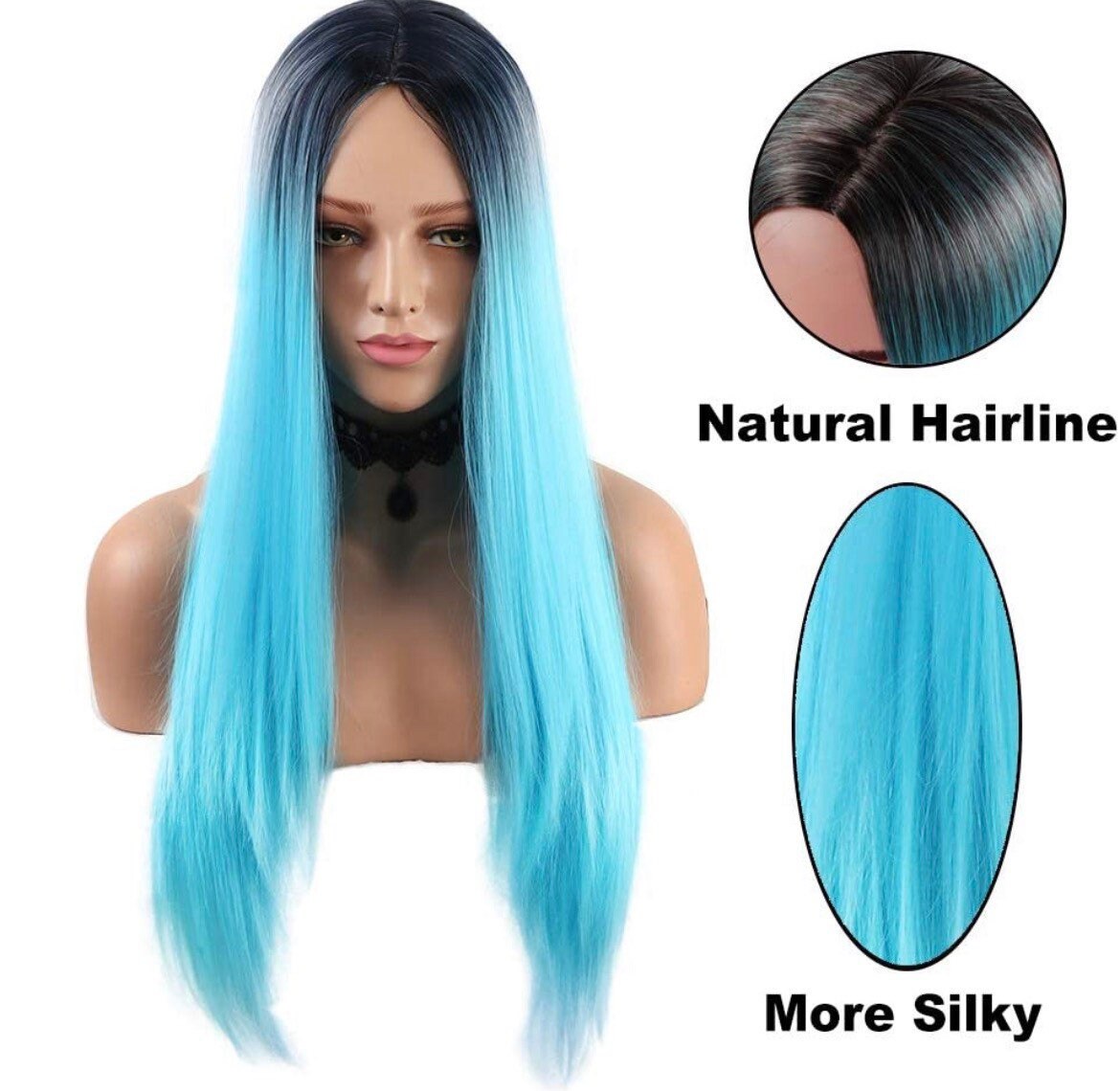 22 Blue With Dark Roots Straight Wig Arrives New Etsy Israel